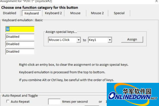 2. The yellow grid is the key you want to map. For example, if the joystick direction is upward, it corresponds to W on the keyboard. Then click the assign button and OK. As shown in Figure 2