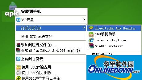 2. Right-click the Yuntu TV live broadcast Android version file and select BlueStacks apk handler to open and install.