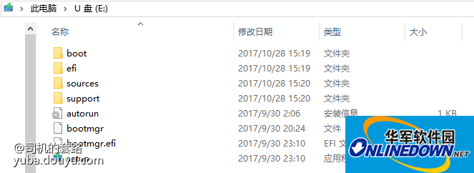 Then unzip the downloaded win10 system iso image file to a USB flash drive. The effect is: