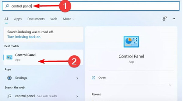 Click the search box in the taskbar, search for Control panel in the search box and open the control panel.