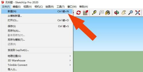 Open the SketchUp2020 software, create a blank drawing area, and select the menu [New] with the left mouse button, as shown in the figure below.