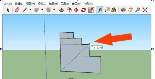 Finally, use the [Tape Measure Tool] to measure the length of the diagonal line in the graph, and you can see the measured distance displayed in the graph. Through this operation, you can learn to use the tape measure tool to measure graphics in SketchUp2020.