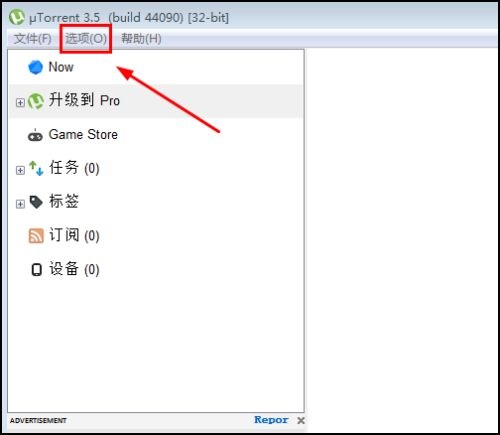 1. Double-click the uTorrent software running on your computer. After opening it, use the mouse to click the option button above.