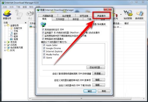 Step 3: Then in the "Configure Internet Download Manager" dialog box, click "Sound Events" (as shown in the figure).