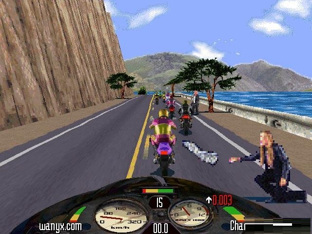 Use the "violent motorcycle.cmd" file when running, do not run roadrash.exe