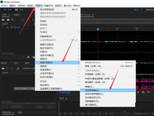 Step 2: Click "Effect" - "Noise Reduction/Restoration" - "Adaptive Noise Reduction" in the menu bar (as shown in the picture).