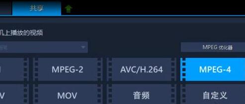 The second step is to go to the sharing interface. In the sharing interface, we see 8 production functions on the upper right. We choose MPEG-4 for this function.