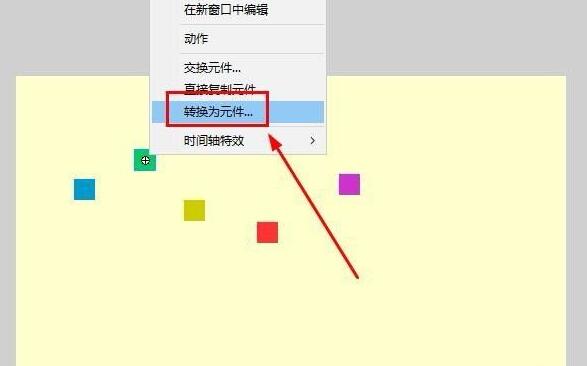 Convert these rectangles into movie clips respectively. The specific operation is to right-click and select Convert to Component or use the shortcut key f8. Note that the registration point must be in the center.