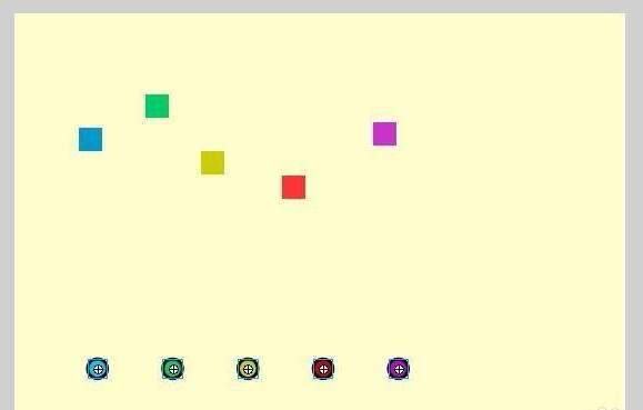 Continue to use the Ellipse Tool to draw five circles, as shown in the picture, the colors correspond to the rectangles.