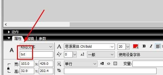Finally, place a dynamic text on the stage and set the instance name to txt