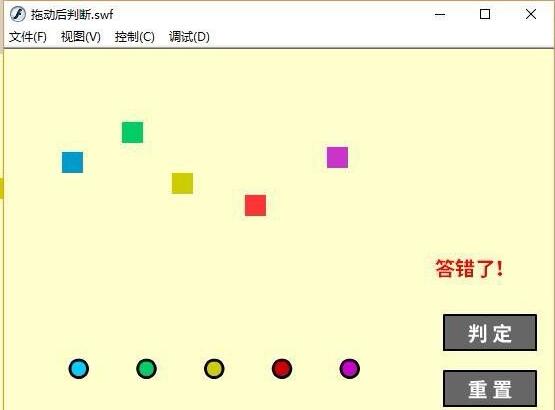 After running, you can drag the circle to the square position. If everything is in the correct position, click OK and it will show that the answer is correct.