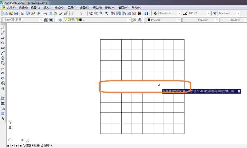 The fourth step is to select the trim command on the common toolbar, confirm with a space, and trim the vertical line in the middle of the chessboard, as shown in the picture.