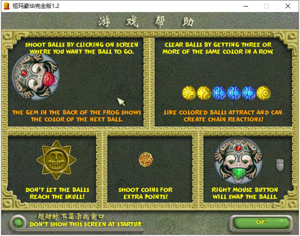 Click the left mouse button to launch Zuma to launch colored balls in the direction of your current mouse.
