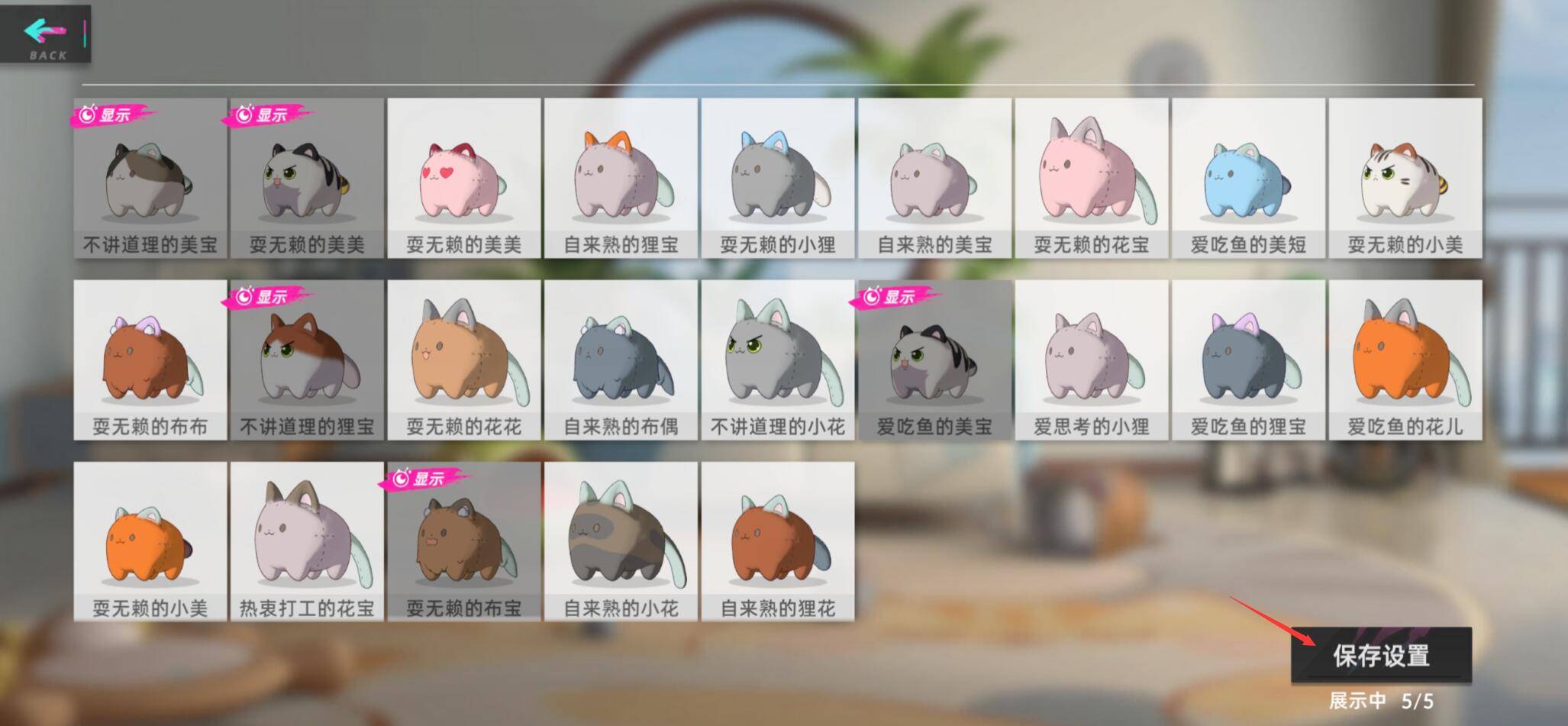 3. Next, you can select up to 5 cat balls here, click to save the settings, and you can place the cat balls in the cat house.