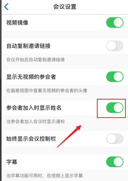 Step 4: Click to close the sliding button behind [Display names when participants join].