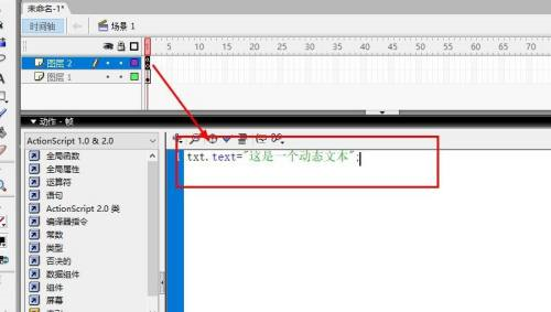 Step 5: Select the first frame of the new layer, right-click and select Action to open the action panel, and enter the code as shown in the picture.