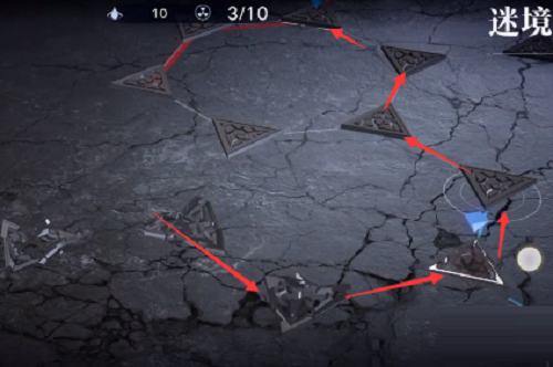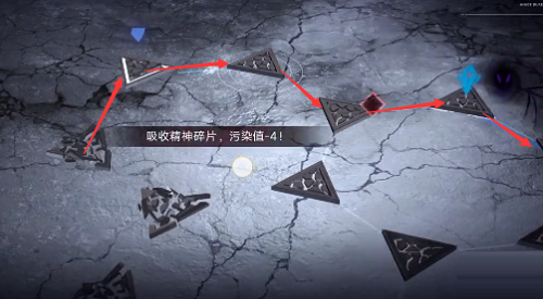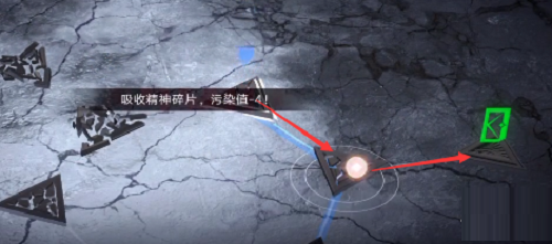 2. Starting from the first instrument, we first go to the right to pick up the first spiritual fragment. There will be a prompt for the monster to wake up in the picture. It is not a big problem, just ignore it. After picking up the first spiritual fragment, the monster on the right will wake up. At this time, you must move in the direction indicated by the red arrow in the picture, and touch the instrument to activate the barrier.
