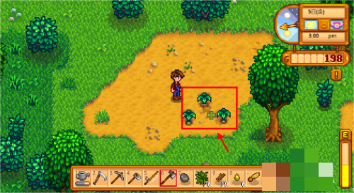 As shown in the picture below, it is a spring onion. Click one by one to pull it up and put it in your backpack. You can eat or sell it.