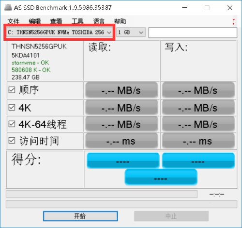 Step 1: First open the software, pull down the mark to select the hard drive that needs to be speed tested.