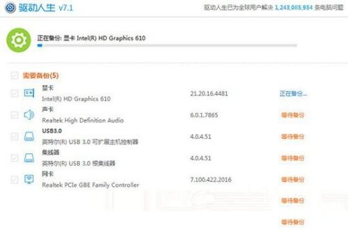 After starting the backup, the user only needs to wait for a while, and the software will automatically start backing up the selected driver, as shown in the figure below:
