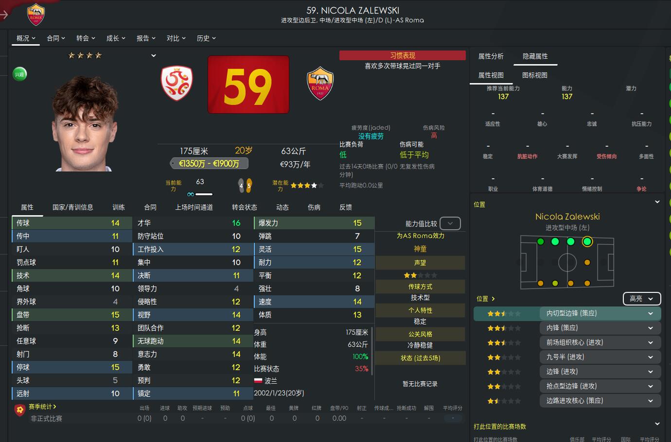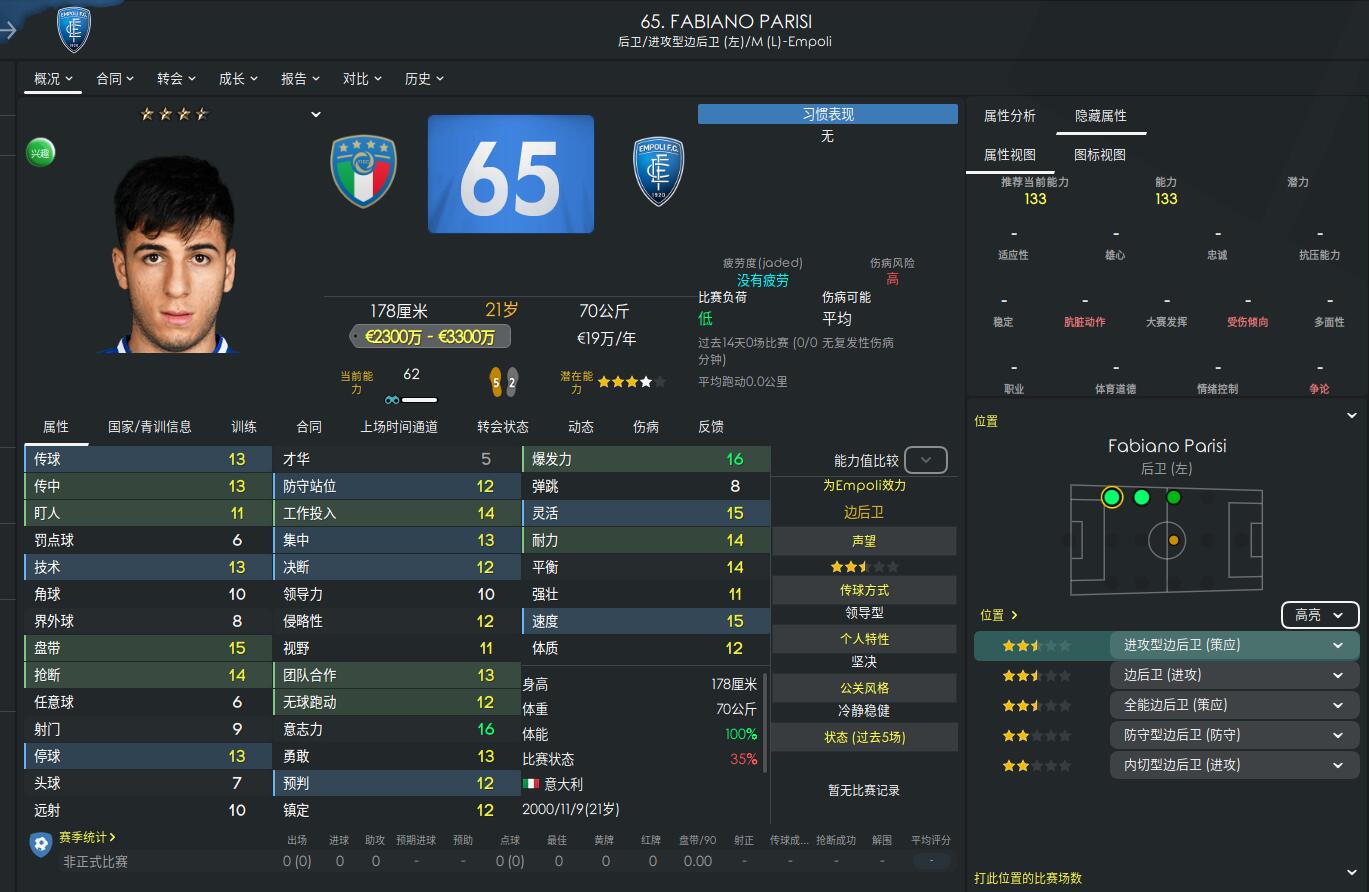 Recommendation reason: Roma youngster, an Italian-born Polish player with a one-stop left wing, good offensively and defensively, young players usually have a normal spirit, easy to get into, not too expensive to buy at first, needs to be cultivated.