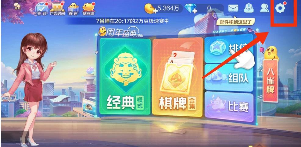 1. Enter Happy Landlord and click the "Settings" icon in the upper right corner of the game homepage. As shown below: