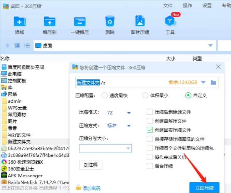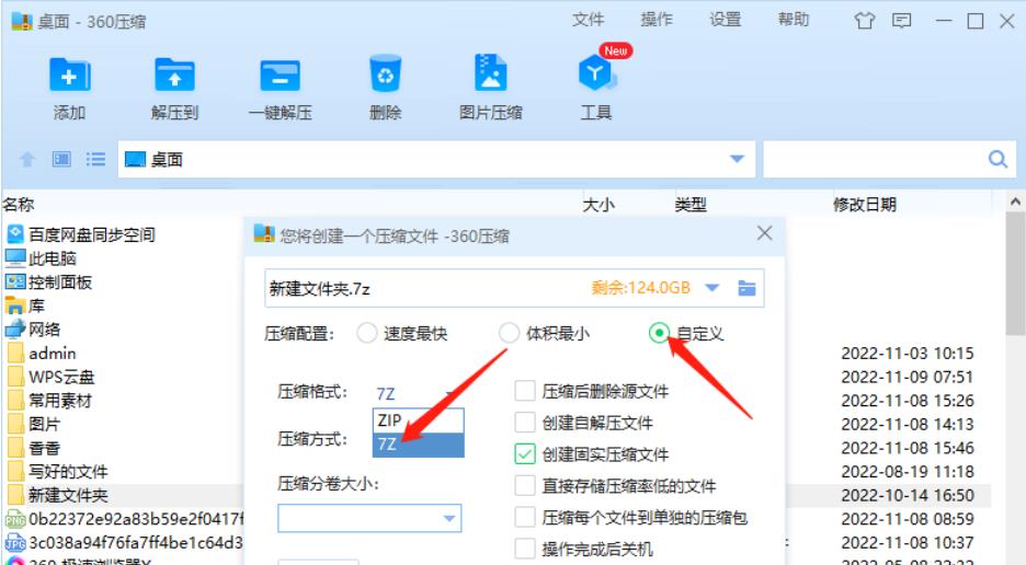 3. Or you can check [Custom] and select 7z for [Compression Format] below, because generally 7z has a stronger compression and the compressed file size is relatively smaller.