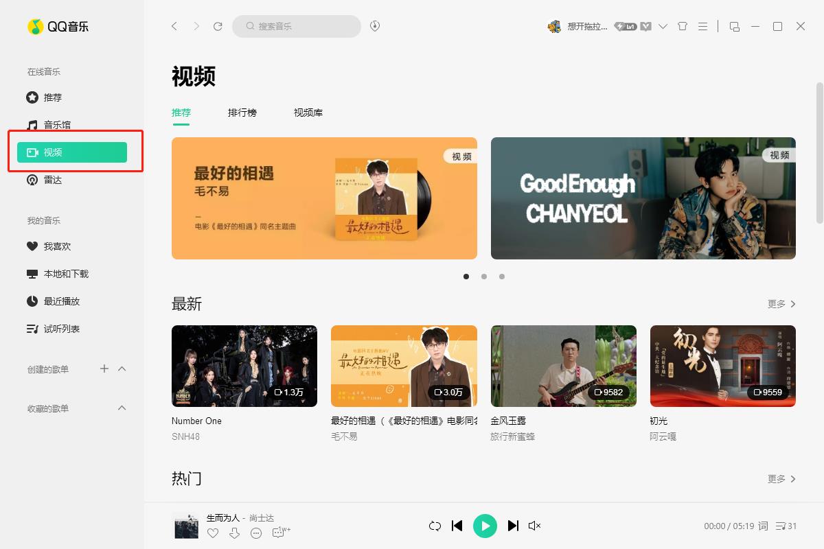 1. First, we open QQ Music and click the [Video] button as shown in the picture.