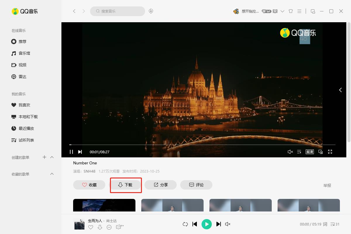 2. Find the song you want to listen to, click it to enter the playback page of the song, and click the download button.