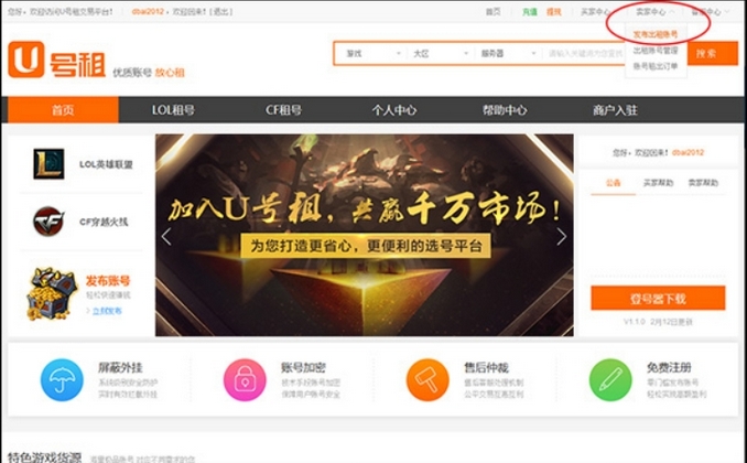 Click "Seller Center" on the homepage --> "Publish Rental Account"