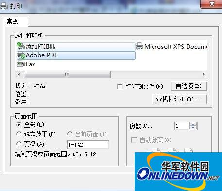 3. Select adobe PDF in the pop-up dialog box, as shown in the figure below, click Print, then make a cup of tea and wait.