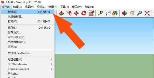 Open the SketchUp2020 software, left-click [New] under the menu to create a blank drawing area, as shown in the figure below.