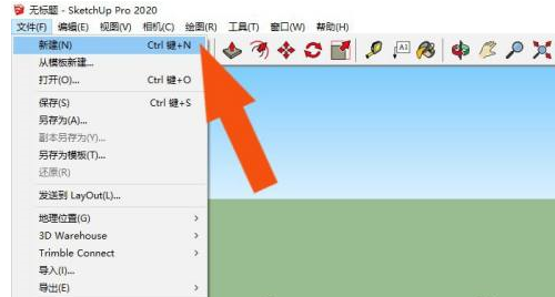 Open the SketchUp2020 software, create a blank drawing area, and select the menu [New] with the left mouse button, as shown in the figure below.