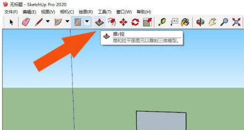 Then, in the drawing area, draw a rectangular shape and click the push-pull tool, as shown in the figure below.