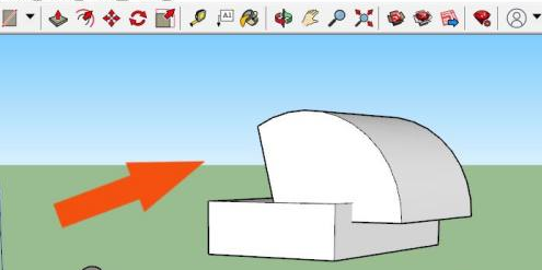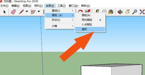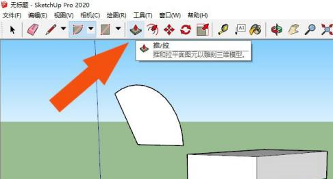 Next, in the drawing area, draw a fan-shaped graphic and click the push-pull tool, as shown in the figure below.