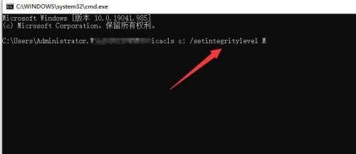 6. From the command prompt interface that opens, enter the command "icacls c: /setintegritylevel M" and press the Enter key to implement relevant permission setting operations. Wait patiently until the system prompts "A file has been successfully processed." At this time, you can copy and paste normally after restarting the computer.