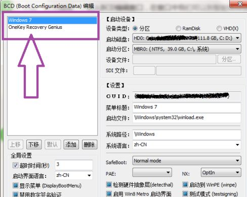 Then click "Smart Edit Mode" to enter the BCD smart edit mode window. You can see the system boot items in the upper left corner of the page.