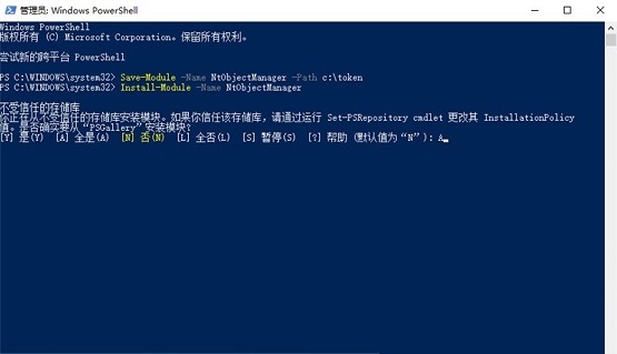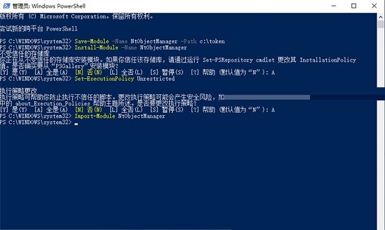Next, import the NtObjectManager module, enter and press Enter to execute the following command: