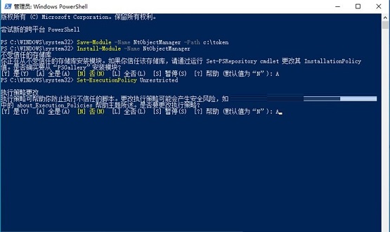回车执行命令,系统会显示执行策略更改,输入 A 并回车确认