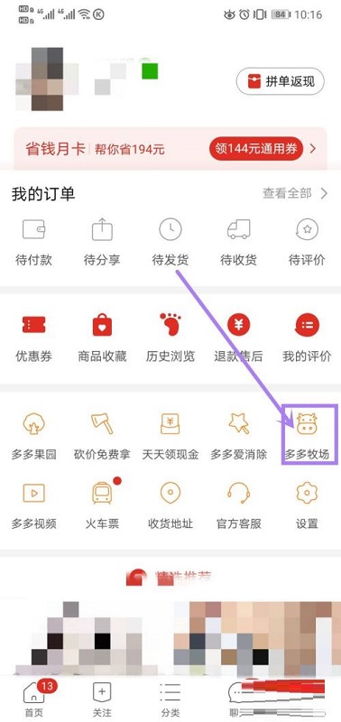 Step 3: Find Duoduo Ranch on the Pinduoduo personal center interface (as shown in the picture).
