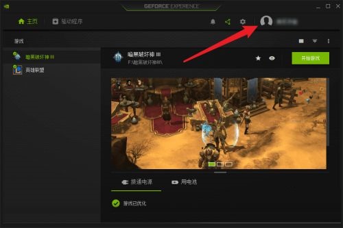 Step 2: Then after we enter the GeForce Experience main interface, click "User Avatar" in the upper right corner (as shown in the picture).