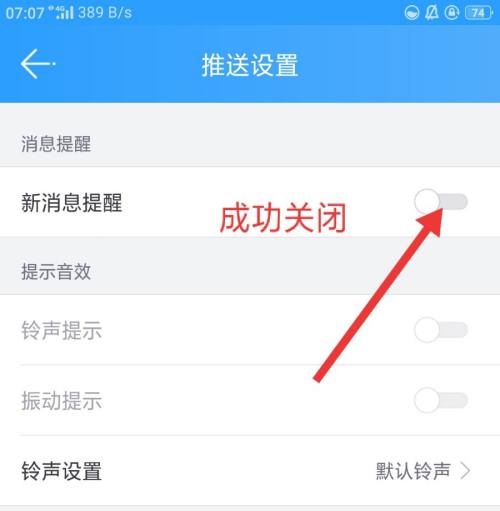 Step 5: Finally, after we enter the push setting interface, slide the slider behind the new message reminder to gray, so that we successfully turn off the new message reminder (as shown in the picture).