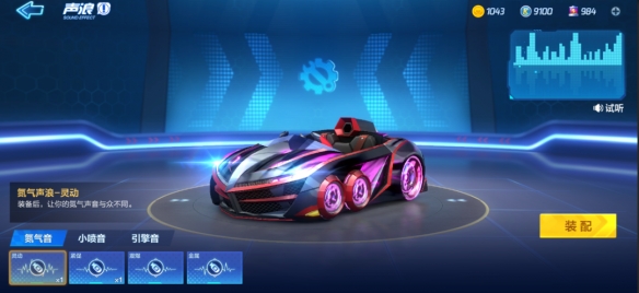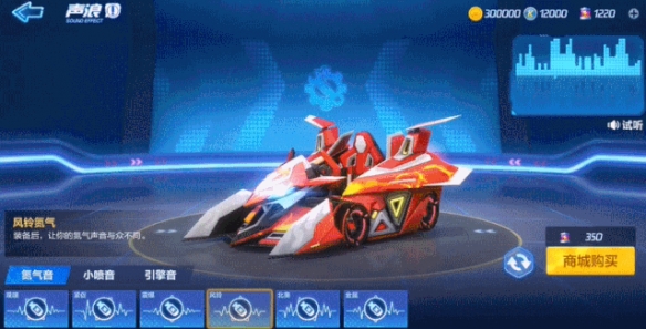 Click on Warehouse - Racing - Customization interface to see the sound customization system. Click to assemble the sound. After successfully assembling the sound, the car will play the sound effect in the corresponding state. Once you get a sound wave, you can install and disassemble it on any racing car.