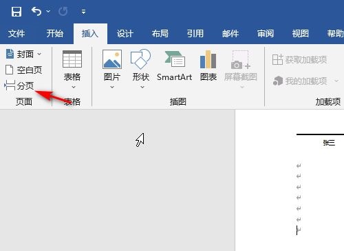 Step 2: Then place the mouse pointer where you want to insert the page break (as shown in the picture).