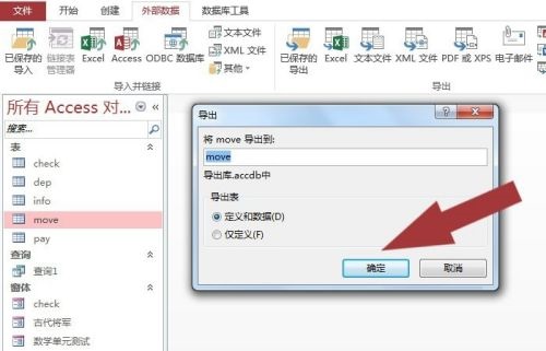 Step 6: Finally, select the table in the database with the left mouse button, select the data and structure included, and click the [OK] button, so that the table data in the database will be exported to other databases, as shown in the figure below. Through this operation, you will learn to export access table data in the Access database.