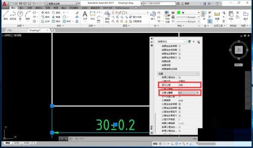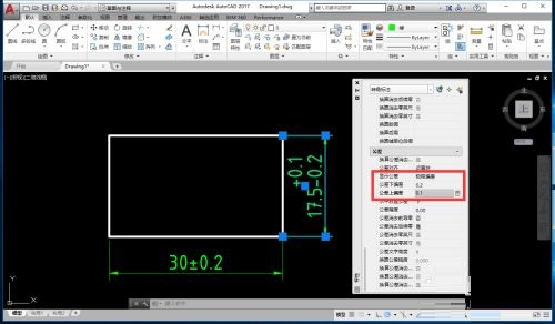 Step 4: We draw another linear dimension, also open the properties window, select "Limit Deviation" in the "Display Tolerance" column, and enter the tolerance value in the "Tolerance Upper/Lower Deviation" column to complete the labeling of the limit deviation (as shown in the figure).