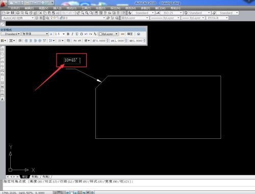 Step 6: Enter the chamfering parameters in the newly created [text box], for example (10*45°) to complete the chamfering label (as shown in the picture).