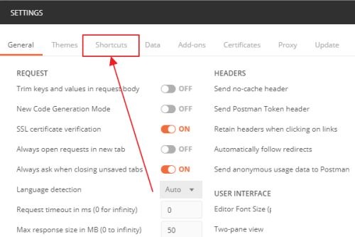 How to set shortcut keys in Postman-How to set shortcut keys in Postman