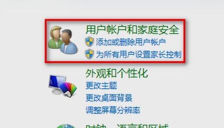 Step 2: Then, in the pop-up page, click Control Panel, User Accounts and Family Safety, add or delete user accounts, and create a new account (as shown in the picture).