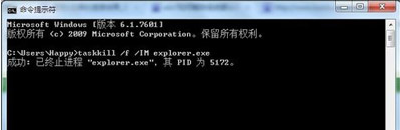 2. Enter "taskkill /f /IM explorer.exe" in the command prompt window, and press Enter to close "explorer.exe" (as shown in the picture);
